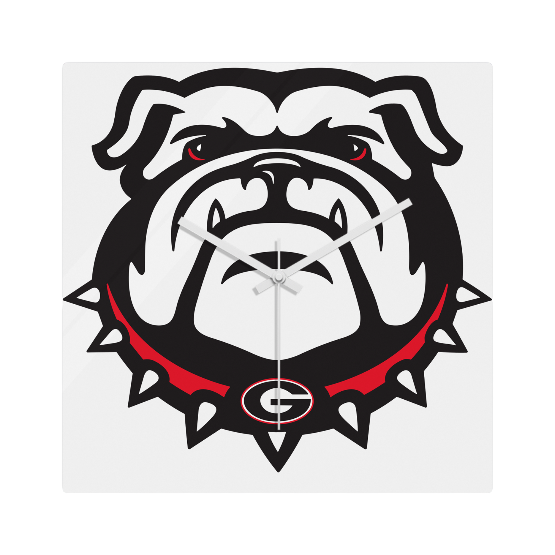 Design: Strong bulldog face with spiked red collar