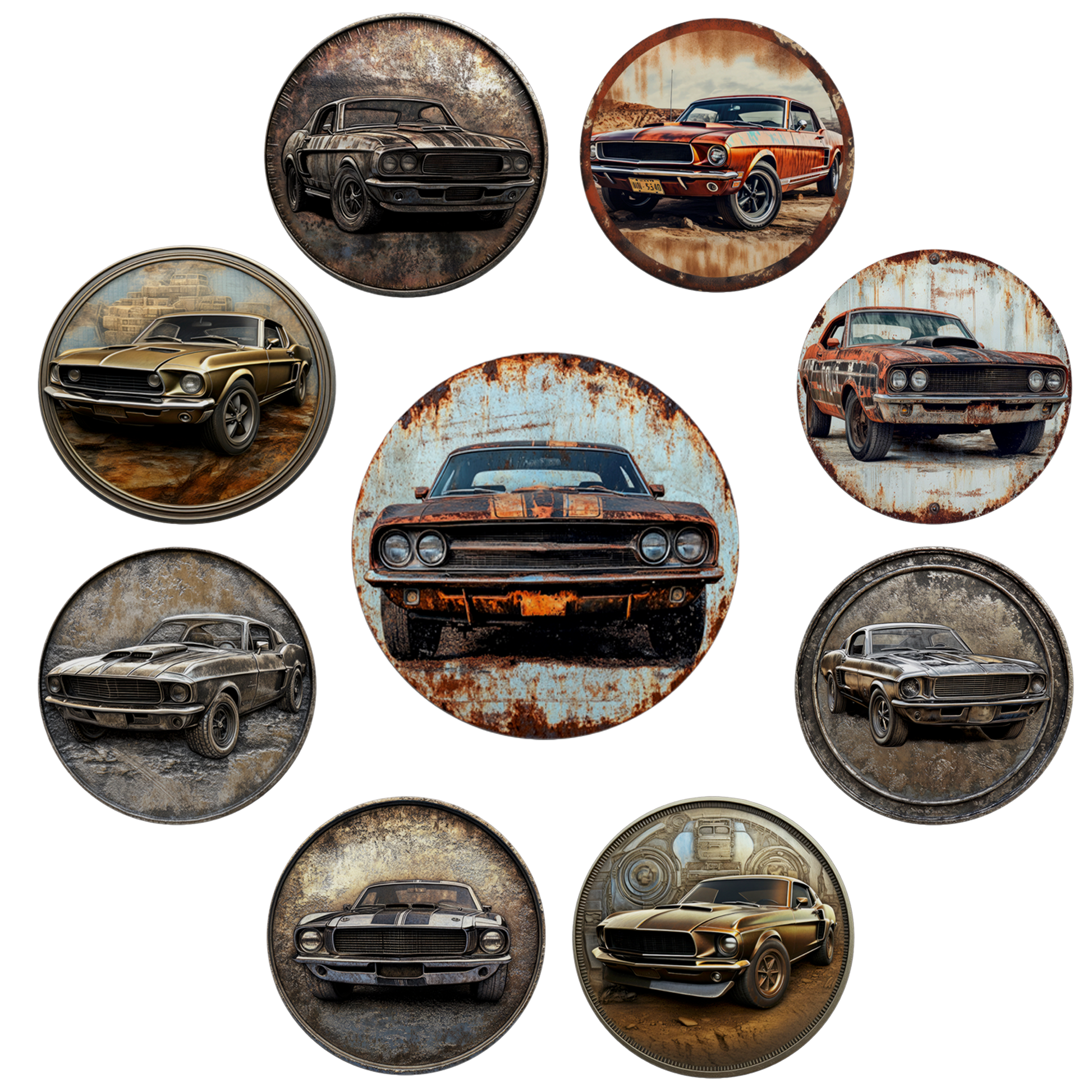 Rust & Metal Look Muscle & Classic Car Coasters - 9 Designs